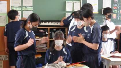 今週から文化祭日課が始まり、休み時間や授業後にボディパーカッションの練習に取り組んでいます。今年度からの初の取組で、生徒たちは仲間と試行錯誤しながらいい演奏をしようと頑張っています。