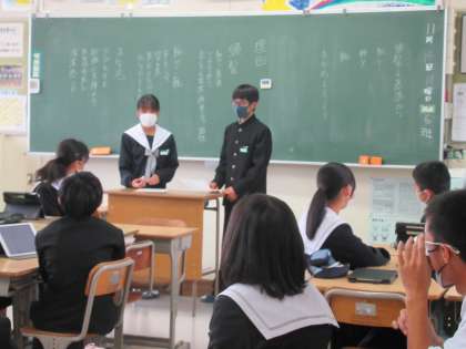 11月14日(月)、全学級で「校則について考えよう」の2回目の授業を行いました。今回は、各学級で見直すべき校則があるかどうか意見を出し合いました。また、見直す理由がある場合は、学級でよく話し合い、根拠をより明確にしていきました。今後は、各学級で出てきた意見を生徒会執行部で集約し、検討していきます。自分たちの学校生活・校則を振り返るよい機会にできました。