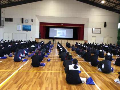 「働く」ということについて考えようをテーマに職業講演会が行われました。ゲストは、ウェディングプランナーを育てる専門学校の講師の方に来ていただき、仕事の内容、大変さ、喜びなどを話していただきました。生徒の感想には、「結婚式が華やかに行われる裏にはたくさんの人の支えがあるということ。」「人を幸せににする仕事の素晴らしさがわかりました。」という感想が寄せられました。今後、「3年生を送る会」のスタッフ活動に活かしていきたいと思います。