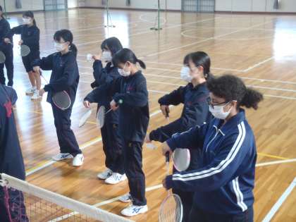 現在3年生の体育科では、バトミントンとタグラグビーを行なっています。担当の山下先生から、「サーブの意味は相手にサービスを与えるという意味です。相手が打ち返しやすいようなショットを考えてください」と説明がありました。一つ一つのプレーの意味についても考えられる素晴らしい授業でした。