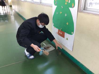 3年生の廊下では、放課に自分から落ち葉の掃除をする姿が見られました。