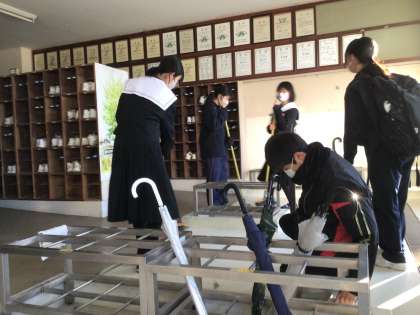 朝、昇降口に行くと1年生と3年生が合同で清掃を行なっています。初めは、3年生の一部から始まったボランティア清掃も今、後輩とともに行う活動へと変化遂げています。後輩の見本となる素晴らしい活動です。