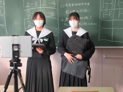 オンラインで行われた集会では、通学靴、靴下、通学カバンについて、変更点と併せて理由やねらいなどが具体的に伝えられました。