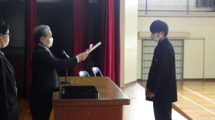 式では校長先生から修了証を受け取り、来年度への意気込みを語りました。また、意見発表では、各学年の代表者が今年度の振り返りと来年度への抱負を堂々と述べました。