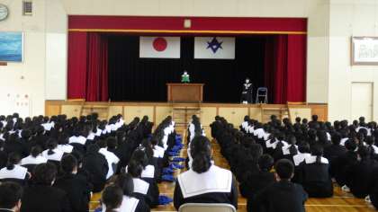3月24日、1、2年先全員が体育館に集まり、令和4年度修了式が行われました。