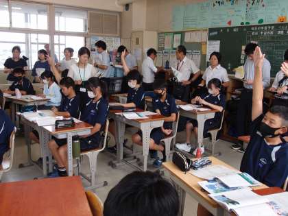 7月5日(水)1年5組では、道徳の研究授業が行われました。前林中学校の先生だけでなく、授業スタンダードの小中連携に向けて、堤小学校や駒場小学校など他校の先生も参観される中、1年5組の生徒は課題に真剣に向き合い、自分のこととして積極的に考えを伝え合いました。