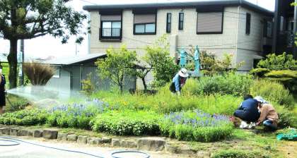 休みに入っても、園芸部の皆さんは頑張って活動しています。今日は、地域コーディネーター皆さんもいっしょに活動をしてくださっていました。