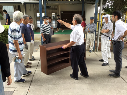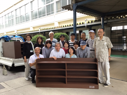 体育館で行事を開催する際、ご参加いただく保護者様や地域の皆様の履物を収納するスペースが不足していました。そこで、地域学校共働本部のコーディネーターさんが、交流館の自主活動団体「前林木楽会」様に下足箱の製作をお願いしてくださっていました。