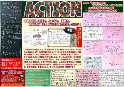これがACTION学年 公開日 2023/10/21 更新日 2023/10/21 活動のようす ありがとう! 来週からも、明るく、力強く、華やかに、ACTION! 保護者の皆様、地域の皆様、文化祭での温かい拍手をありがとうございました。 3年 行事 活動のようす