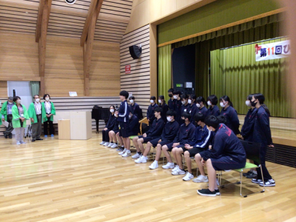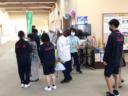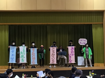 お見送りが済んだところで、ボランティアで今日の活動を振り返りました。中学生からは、「来年の会に向けて、2年生や1年生にも伝えて、前林地区を盛り上げていきたい。」という前向きな声を聞くことができ、頼もしく思いました。これからも地域の方と、笑顔で接していきたいですね。