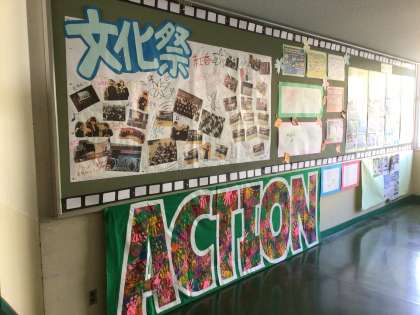 掲示板には、体育祭や修学旅行など今までの思い出を振り返る掲示でいっぱいです。