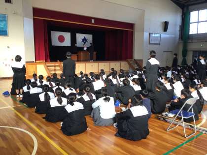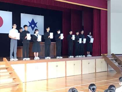 本日、級長、生徒議会議員、各委員会の委員長の認証式を行いました。校長先生から認証状を手渡していただきました。議長やプログラム委員長の決意の言葉にあったように「前期に作った土台をもとにして、よりよい前中を築いていく」ことを期待しています。