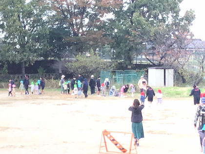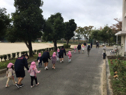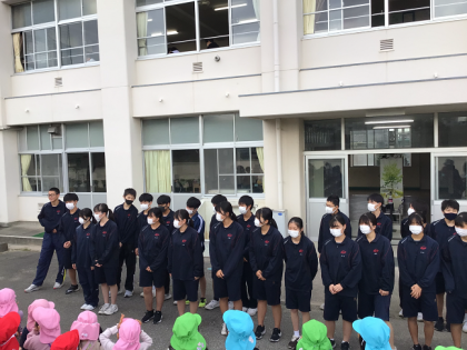 今日は、こども園の園児たちが、どんぐり拾いに来てくれました。入口で待っていた中学生が園児と手をつないでどんぐりがたくさん落ちている場所まで案内し、どんぐり拾いを支援していました。帽子にどんぐりを入れていた園児たちは、いっぱい集まったどんぐりを見てうれしそうに微笑んでいました。このような何気ないふれあいを通して、中学生の自己肯定感も高まっていくのだと思います。