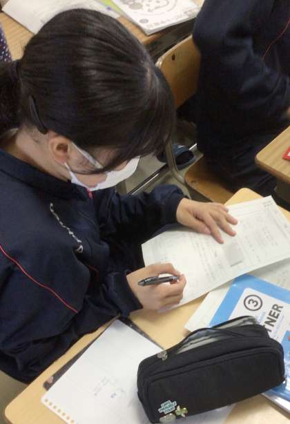 ある学級では、自分たちで問題を考え、それをプリントにしたものをみんなで解き合っていました。