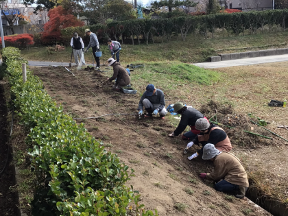 この環境を保つために、今度は、地域の皆様の力をお借りて、雑草が生えないように長い期間、可愛い花の咲くグランドカバーとなる植物の苗を植えました。前林愛にあふれるボランティアさんの中には、植物の管理に詳しい方がたくさんいらっしゃり、本日の作業に多大なお力添えをいただきました。誠にありがとうございました。