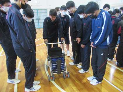 12月19日(火)3年生が家庭科の学習の一環として、介護体験を行いました。
