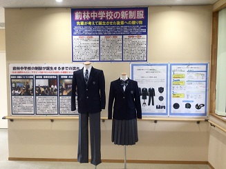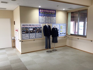 前林中学校の新制服を交流館に展示しています