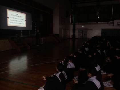 本日の生徒集会でICT委員が、学習用タブレットの正しい使用方法や管理方法について発表を行いました。クイズ形式であったため、一人一人が考え、再確認することができました。これからも学習用タブレットを正しく使用したり、管理したりしていきましょう。