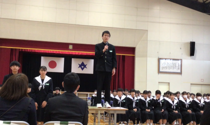 3年生 謝恩会 公開日 2024/03/01 更新日 2024/03/01 各学年から 2月29日(木)に今まで3年生の生徒がお世話になった先生や職員の方たちを謝恩会に招待しました。この会では、どんな人になりたいか決意表明をしたり、教室で使えるプレゼントが贈られたりしました。最後には、心のこもった合唱で「この地球のどこかで」を歌い、先生たちを感動させました。先生たちの喜ぶ顔を見て、卒業への思いを一層高める3年生の姿が見られました! 3年