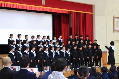新入生のみなさんに前中を知ってもらえるよう、部活動紹介や生徒会の前中紹介、3年選抜合唱による校歌の合唱が行われました。