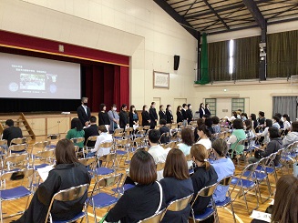 また、本年度から学校説明会を開催することになりました。この学校説明会は、学校経営方針や、教務部・保健部・生徒指導部・地域学校共働本部等から、保護者へ協力をお願いしたいことに絞って話をさせていただきました。日頃から質問の多い服装のことや、昨年途中から始まったラーケーション、さらに最近活動が活発になりつつある地域学校共働本部をさらに知っていただきたいところがあります。今後も保護者のお力添えをいただきたいと思っています。どうぞ宜しくお願いします。