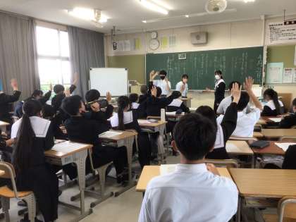 「自分たちの学校は自分たちで作る」を合言葉に、生徒会執行部や各委員会への質問や提案について学級会を行いました。