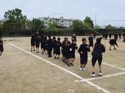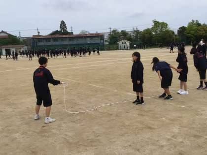 4月26日(金)の6、7時間目に体育祭練習を行いました。入退場の練習では素早い行動や綺麗な整列をしようとする姿が見られました。長縄の練習では各クラスがより多くの回数を飛ぶためにはどうすればよいか考えながら、練習を行いました。