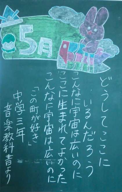 昨日、「6月のボードが完成しました・・・」といって担当者が校長室に報告にきてくれました。写真ではうまく写りませんが、表現の工夫がすばらしく、毎月、どのように表現しているのだろうかと思わず目を近づけてしまいます。