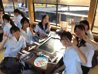 夕食は屋形船でもんじゃを食べました。自分たちで作ったもんじゃは美味しかったですね!