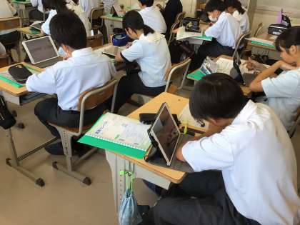 6月14日(金)、1年生の総合的な学習の時間で職業調べを行っています。スポーツ選手や自動車会社など興味のある職業について仕事内容ややりがい、どうしたらなれるかなど様々な視点で調べを進めています。調べていくうちに今まで知らなかった仕事の側面を知ることができ、いい学びになっています。