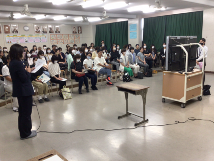父母教師会で、保護者を対象にしたSNS研修会が開催されました。以前より父母教師会では、保護者の立場から子どもたちをSNSの危険から守りたいという思いで取り組んでいました。警察の方に来ていただいて、実際のSNSによる犯罪や、実際の被害の事例を紹介していただきながら、どのように対処したらよいかについて話をいただきました。後半には、子どもたちが被害に遭わないようにするためのアプリについても紹介をされました。