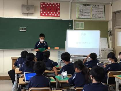 総合的な学習の時間では、職業調べで分かったことを学級で発表しました。仲間の発表を聞いて、これまで知らなかった仕事に興味をもつ子もいました。