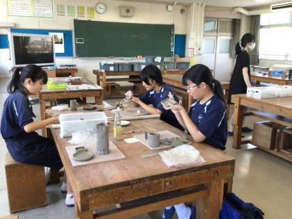 本日美術部で民芸館の野田先生をお迎えして陶芸教室を開きました。お皿やコップなど丁寧な指導をいただきながら完成させました。焼き上がりが楽しみです。