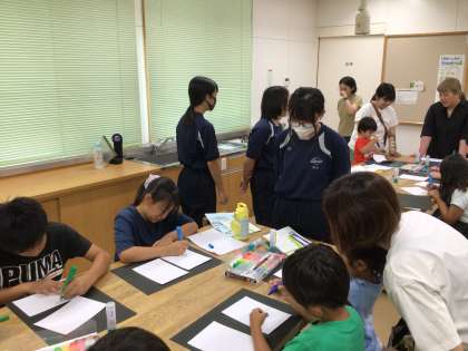 科学部はびっくり箱、美術部はおなまえアート、コンピュータ部はオリジナルパズルを作りました。いろいろな人達と関わることができて、笑顔がたくさん見られる素敵な講座でした。