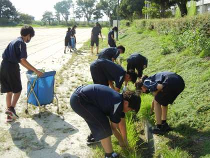 先週から清掃の時間、1年生で第1グラウンドの草取りを行っています。夏休み中にたくさん伸びた草もマンパワーで一気にきれいになっていきます!学校をきれいにすることで心もきれいになっていきます。清掃に一生懸命に取り組む素敵な姿でした!!