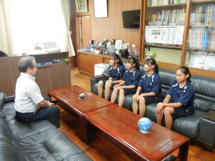 9月17日(火)、チアリーディングやアーティスティックスイミングで全国大会に出場し、活躍した生徒たちが校長室を訪れ、活動報告しました。明るく爽やかに受け答えする姿から、今まで積み上げてきた努力が自信につながっていると感じました。来年はさらなる飛躍をめざして頑張ってください!