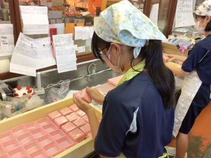 獣医に行った生徒は、鶏肉を使って縫合の体験をしたり、飲食店で体験をしていた生徒は、飲食店の忙しさに体力を奪われながらも、一生懸命接客をしたり、商品を提供していました。