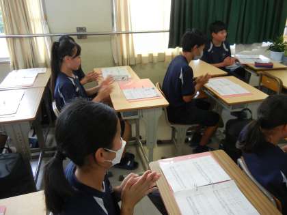 9月24日(火)から文化祭日課が始まり、各学級でボディパーカッションの練習が始まりました。1年生にとっては初めてのボディパーカッションで試行錯誤しながら練習に取り組む姿が見られました。少しずつリズムがまとまってくる感覚を楽しみながらみんなで創りあげる喜びを感じてもらいたいです!!