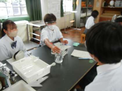 今週の授業の様子です。1年生の理科の授業では、水溶液について学習しています。溶けた物質が再び現れる現象から水溶液の中ではどんなことが起きているのかを考えました。目に見えないものをイメージしながら理解を深めています!