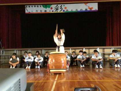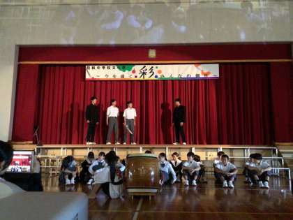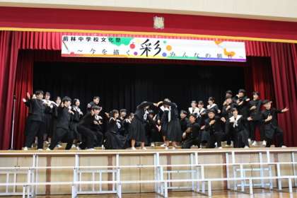 10月17日(木)は、前林中学校の43回目の文化祭でした。文化祭では、一人一人がそれぞれの彩で輝いて欲しい、そんな願いからスローガンを「彩 〜今を描くみんなの個性」としました。オープニングでは、アカペラ、太鼓、ダンスなど自分の特技で文化祭を彩り、感動的な幕開けとなりました。