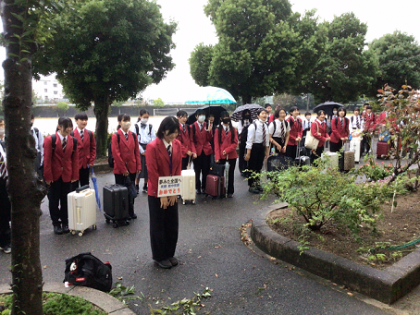 部活動の様子です。2日朝は、東京で開催される全国大会に向けて吹奏楽部が「いってきます」のあいさつをしました。日本でも有数の素晴らしいホールで演奏できるとのことですので、きっと思いあふれる素敵な演奏をしてくれることでしょう。