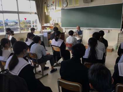普段行っている朝読の時間を使って、絵本の読み聞かせをしていただきました。