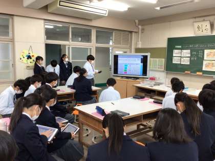 この授業では、家族が快適に過ごすことをテーマに家族それぞれの希望や条件に合わせて部屋の配置を考え、発表しました。班によって違う視点をもっており、配置の理由も様々で生徒たちは、考えを深めていました。