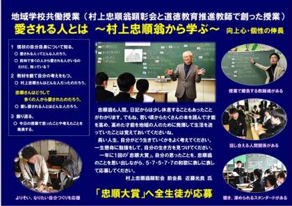 道徳教育推進教師と村上忠順翁顕彰会様が長い時間をかけて検討を重ね、道徳科の授業(地域学校共働授業)を創りました。