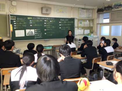 前林地区で活躍された村上忠順翁を教材にした道徳を行っています。村上忠順翁の生き方を通して、前中シップにもある「愛される人」について考えました。村上忠順翁顕彰会の方にもお越しいただき、村上忠順翁についても深く理解をすることができました。これからも前中生全員で、愛し愛される人になっていきましょう。