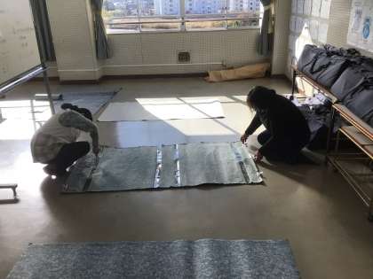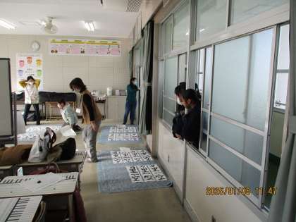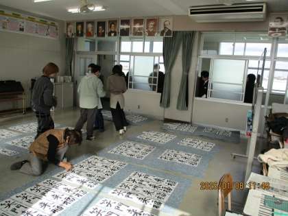 12月19日(木)と20日(金)、そして1月8日(水)と9日(木)の4日間で、のべ13名の前中応援隊の方々にお越しいただき、書き初め大会で生徒たちが書き上げた習字を、雲画紙へ貼る作業を行っていただきました。