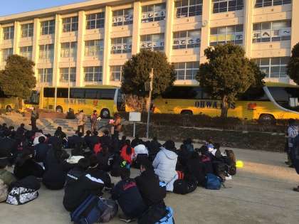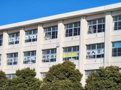 本日から3日間、2年生が自然教室に出かけます。朝早くから生徒たちが荷物を持って登校してきました。校舎には、3年生が2年生に向けてメッセージを貼ってくれています。「いってらっしゃい。大華〜自分で考えて、行動できるFamily学年へ〜」