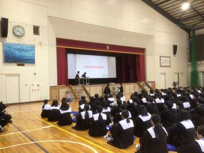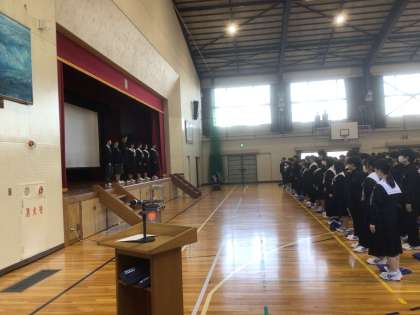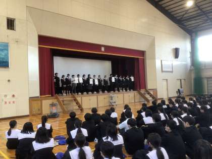 本日の生徒集会では、吹奏楽部、明るい選挙ポスター、少年の主張の表彰披露とICT委員会による発表を行いました。