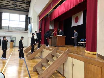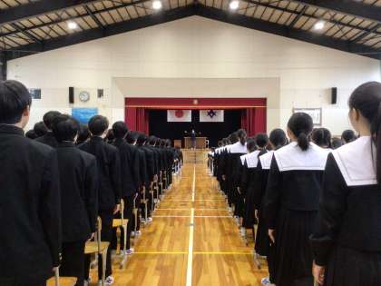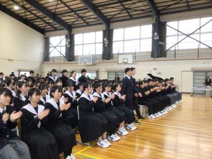 全校で卒業式の予行練習を行いました。