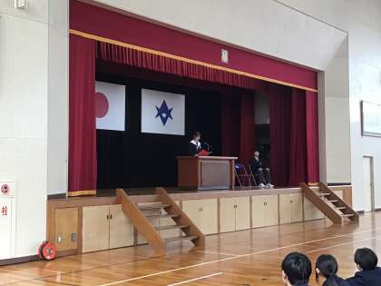 修了式では、大勇賞の表彰と学年代表から1年を振り返っての話がありました。